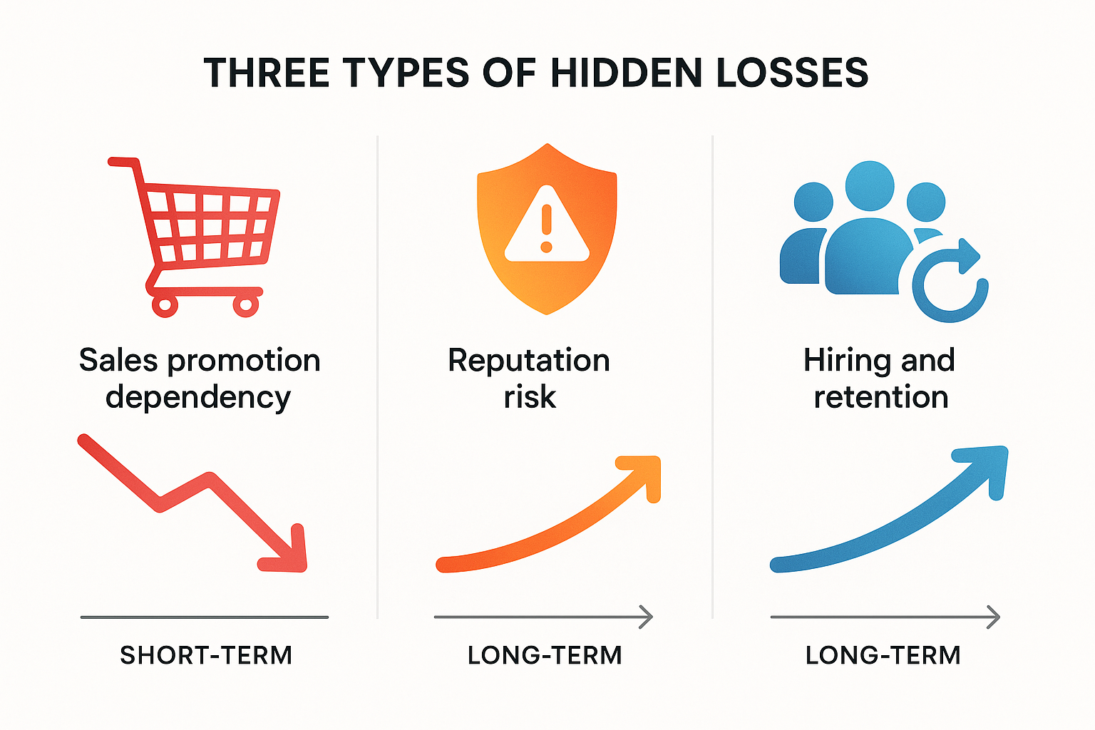 もし我々がこの混同を放置するなら、短期の獲得効率は一時的に良く見えても、ブランド資産(再訪・推奨・許容価格)という将来キャッシュフローの母体を目減りさせ、結果的に「失う痛み」が大きくなる。