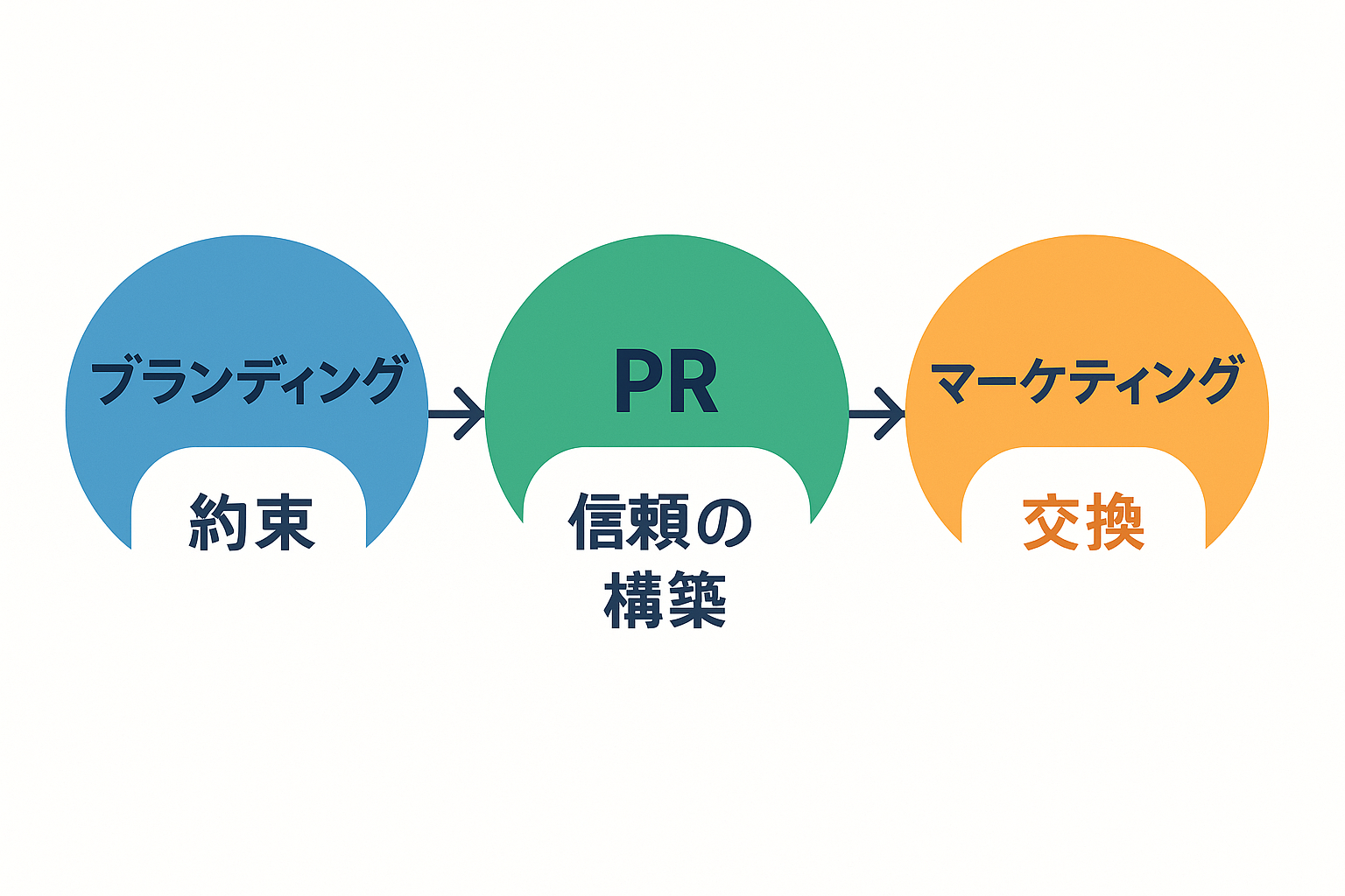 1. ブランディング(約束)・マーケティング(交換)・PR(信頼の接続)は役割もKPIも異なる。混同は将来の損失を拡大