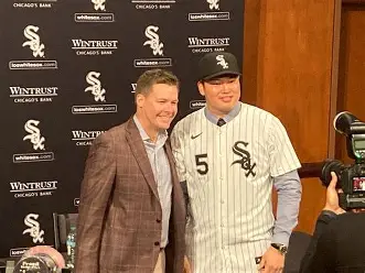 会見場に満ちる英語のざわめき。ガラスの外では、冬を運ぶシカゴの風が道を削る音がしていました。村上宗隆選手は胸のロゴを静かになぞります。ホワイトとブラックが交わるその紋章は、ただの色ではありません。過去と未来、誇りと未知、正解と問い——彼がこれから歩く道の光と影です。