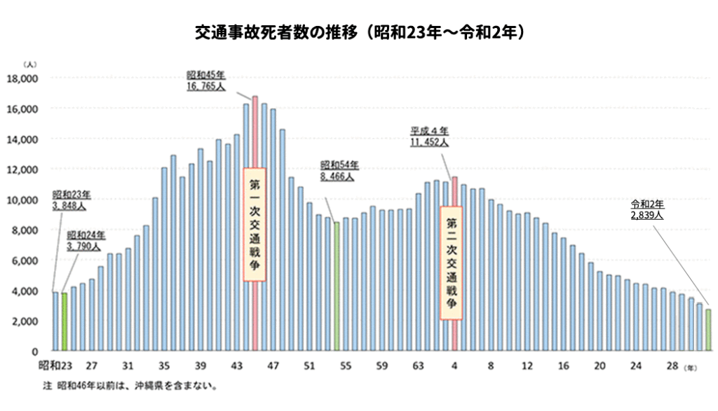 NHK報道(警察庁統計)によれば、直近の年間交通事故死者数は全国で2547人となり、統計開始以来の最少を更新しました。長期トレンドとして死亡リスクは下がっていますが、社長がここで読み誤りやすいのは、「安全化が自動的に続く」という前提です。